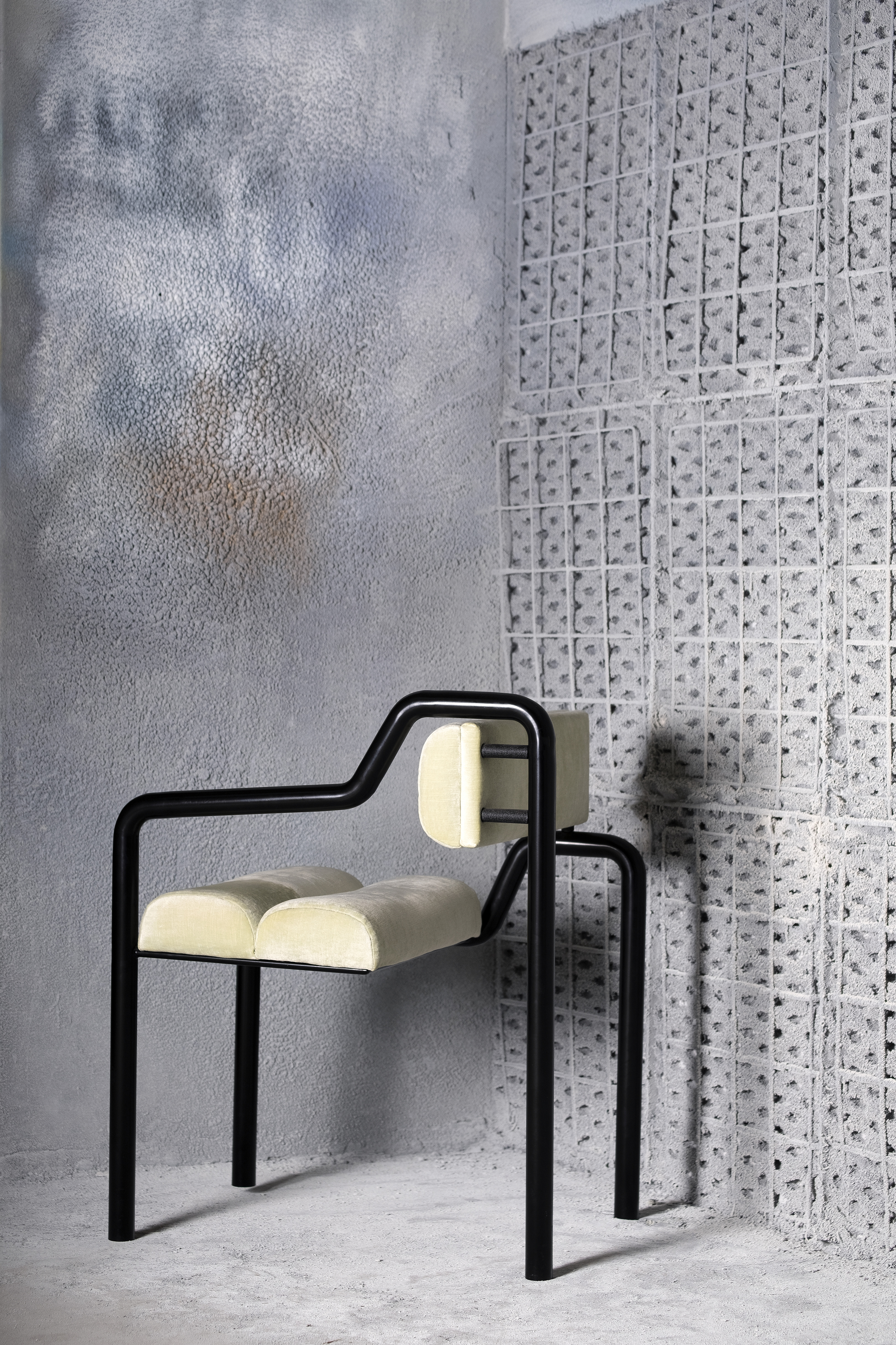 The Tubie Chair originated over a long dinner conversation, to replicate just that — the body turned to the side in intense discussion, with an arm slunken over an armrest, wine in hand.